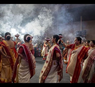 The beauty of Durga Puja in Bengal is unparalleled, a tapestry woven with threads of tradition, art, and devotion. It's a celebration that transcends time and space,my heart felt heavy with the longing to be there, amidst the pandemonium of joy and the symphony of cultural richness.